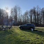 Annäherung über die Wiese. Bei regnerischem Wetter kann es schwierig sein, zu dem oben gelegenen Campingplatz zu gelangen.