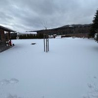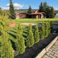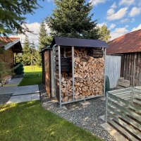 Mit einem Wohnwagen oder Wohnmobil empfehle ich, in Richtung Poběžovice zu fahren. Diese Route bietet den besten Belag und die relativ breiteste Straße. Alternativ kann man auch von Bela nad Radbuzou kommen. Hier ist die Straße schlechter, schmaler und führt lange Zeit durch den Wald. Es besteht die Möglichkeit, Forstmaschinen zu passieren. Vor dem Grundstück gibt es einen großzügigen Platz - eine "Drehscheibe", ideal für das Handling eines Wohnwagens und eines Wohnmobils. Die Einfahrt ist ca. 3,5 m breit und erstreckt sich auf eine Fläche von 14 x 9 m vor dem Eingang des Grundstücks. Wenn das Tor vollständig geöffnet ist, bietet es einen Raum von 290 cm Breite.