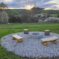 - Solární sprcha, umístěná ve spodní části pozemku na Stanovišti 1, vč. zástěny a kamenného koberce, přes léto v provozu (teplá voda závislá na slunečním svitu a odběru). Nově k využití také umyvadlo se studenou vodou a zrcadlem