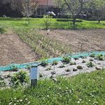 Zahrada k parkování je asi 25x30 m tak akorát pro jednu posádku.Obávali jsme se vjezdu po deštích, ale zbytečně. Zajeli jsme obytkou bez problémů. Parcela je mírně svažitá ale k rozumnému vyrovnání stačily běžné klíny. Na pozemku je několik dobrých vychytávek- zahradní sprcha na hadici a hygienická boudička, které nám plně postačovala.