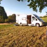 Název pozemku "luxusní naprostá samota" vůbec nepřeháněl. Bylo to opravdu luxusní. Už samotný dojezd na rozkvetlou stráň kde je plno trnek byl dobrodružný. Pozemek je v mírném svahu, ale stačila chvíle a obytňák byl vyrovnán. Děkujeme za dobrou komunikaci s majitelem. 👍