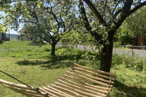 Klid, výhled na kostelík, pasoucí se kozy a třeba i srnky, sprcha a záchod, co víc si přát.